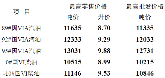 根据国家发展改革委公布的国内成品油价格调价信息,现将我省汽、柴油最高零售、批发价格公布如下,自2022年6月14日24时起执行。