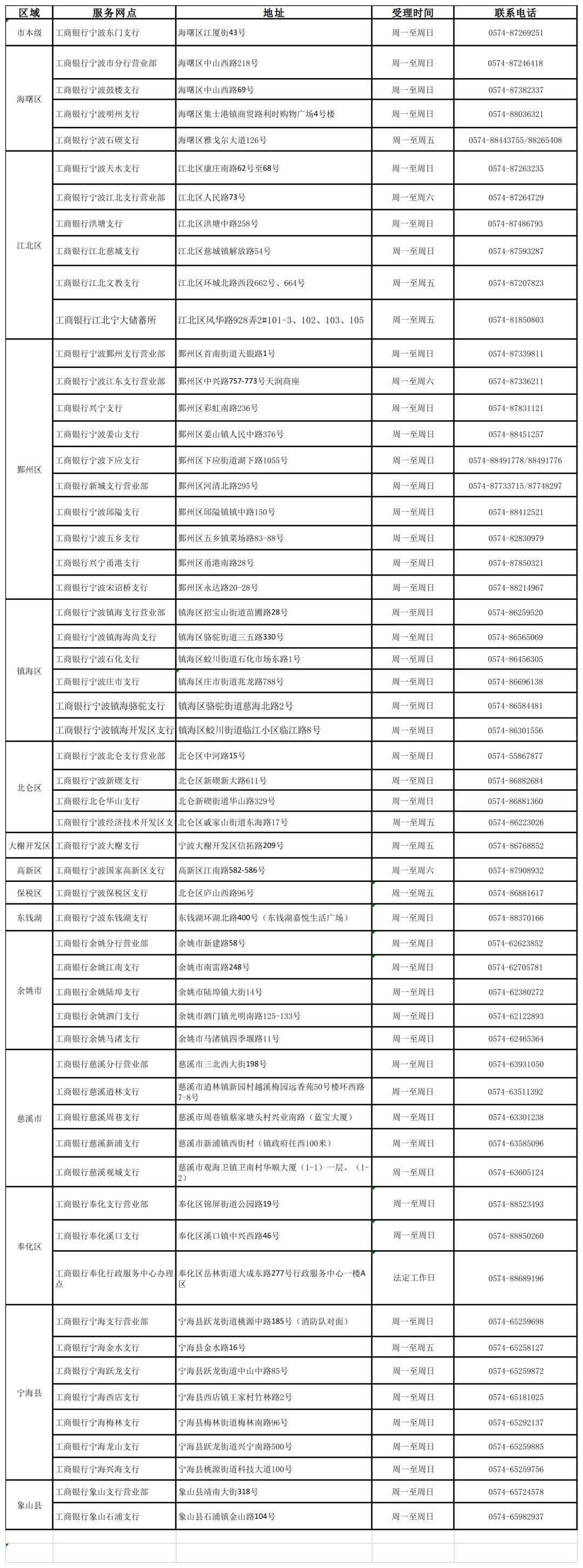 全市工商银行即办服务网点
