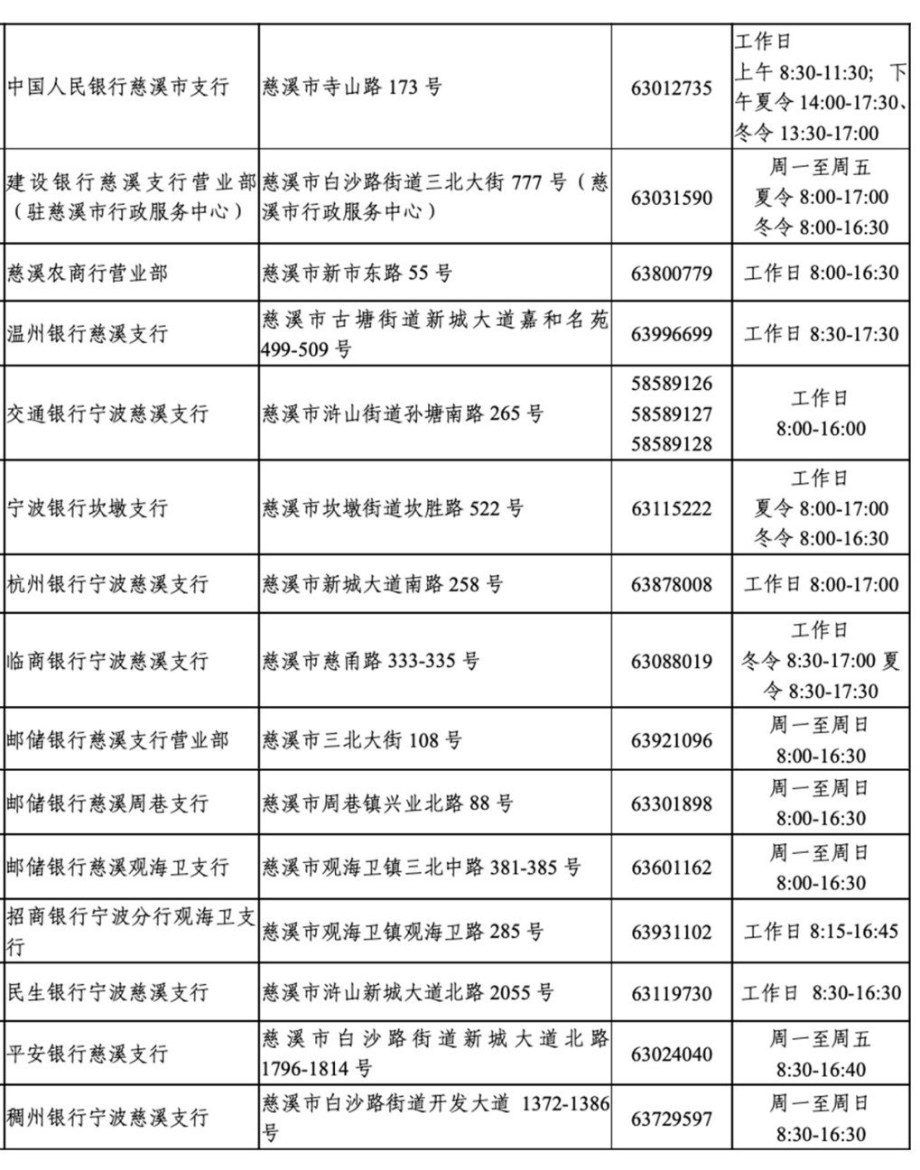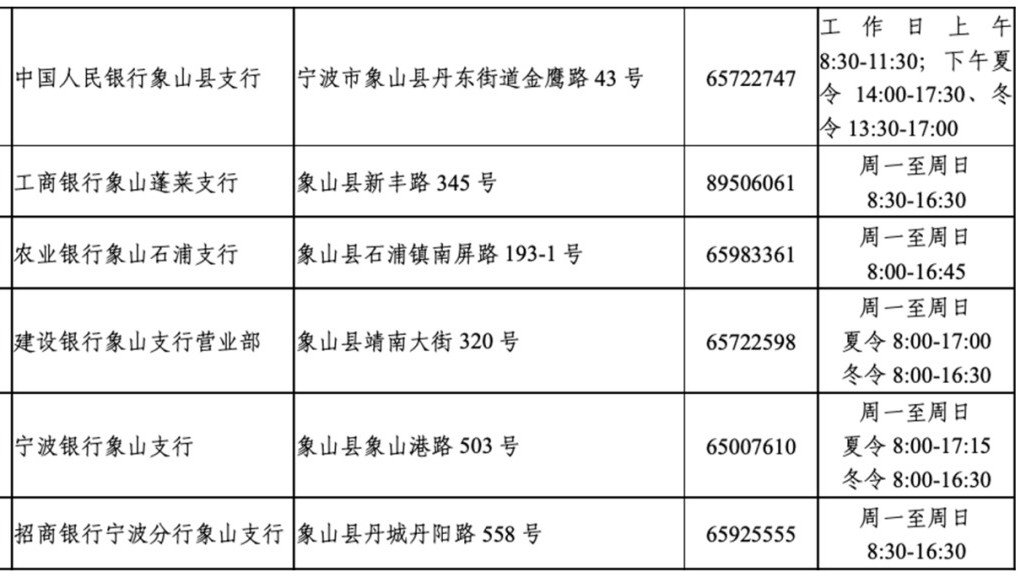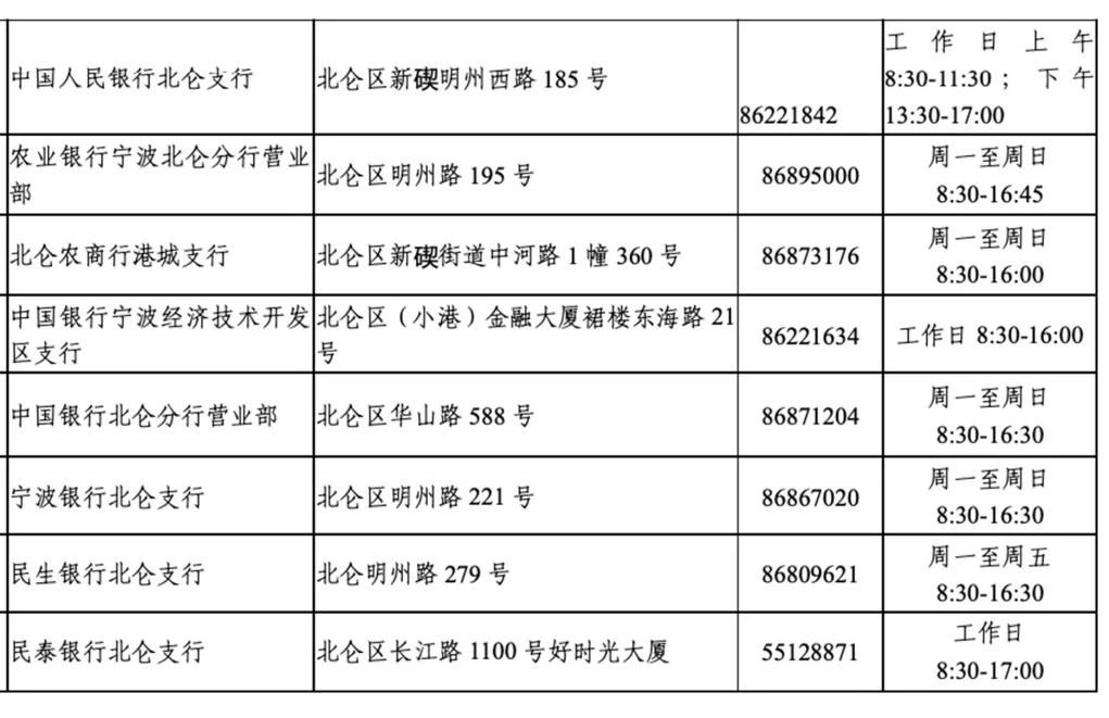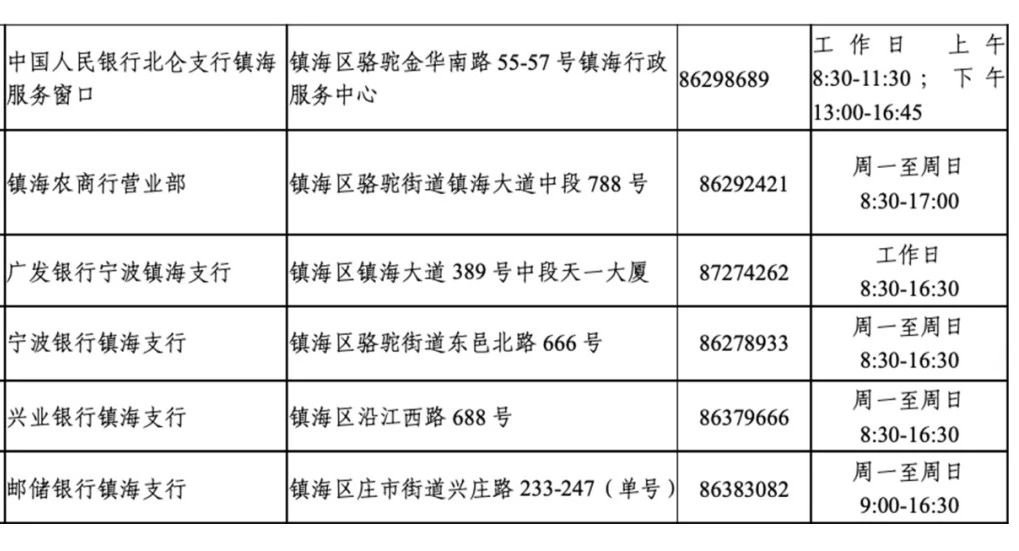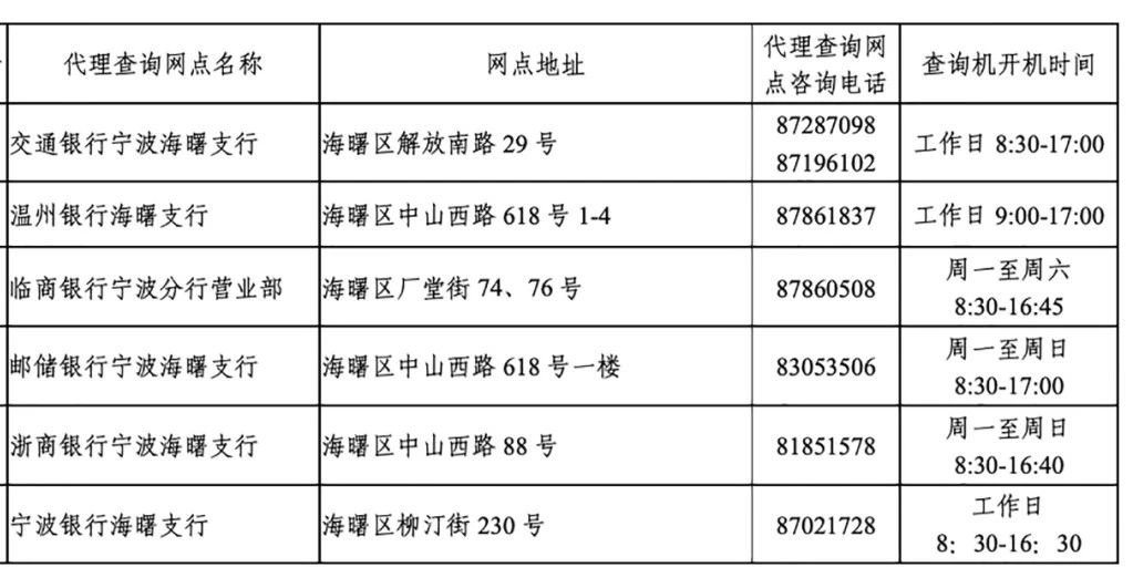 目前,宁波市个人信用报告自助查询网点信息如下——
