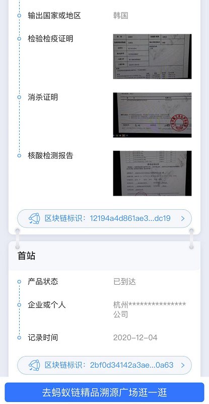 这页面可以查看到是从哪个国家进口的,还可以查询该商品的检验检疫证明、消杀证明和核酸检测报告内容。