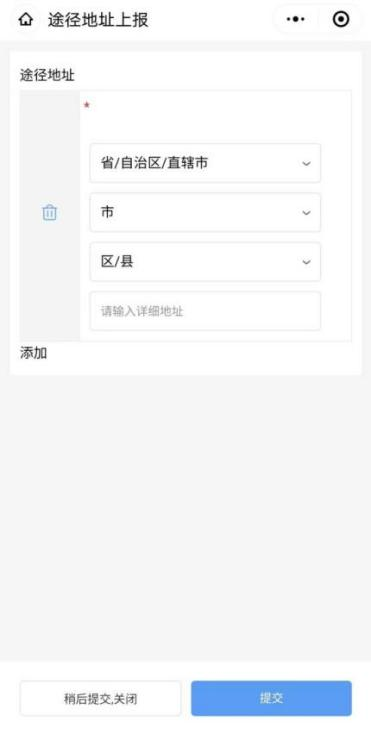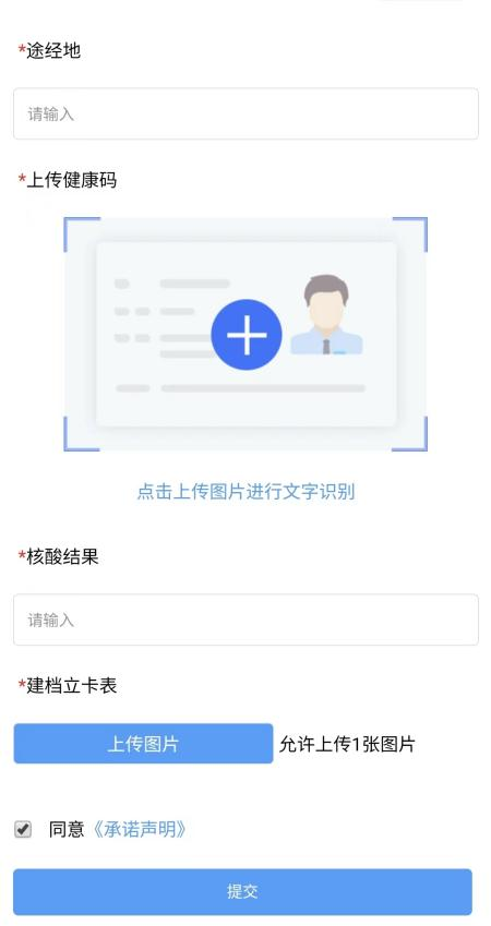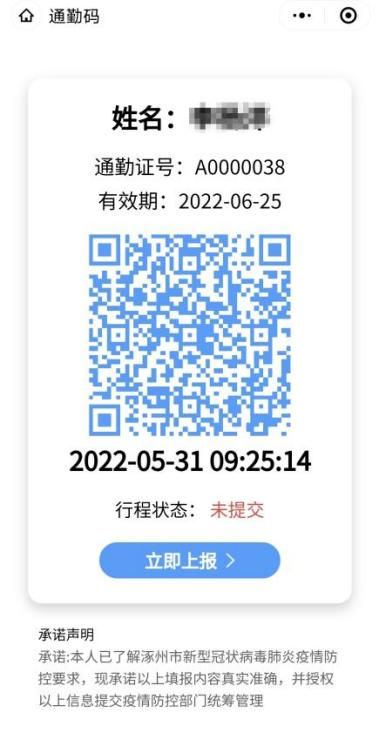 (四)提交完成后,进入审核期。审核通过后,每次在使用通勤证前均需真实填写途经地。即可显示通勤证,其中行程状态显示“已提交”,否则显示“未提交”。