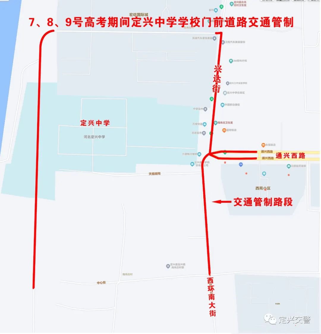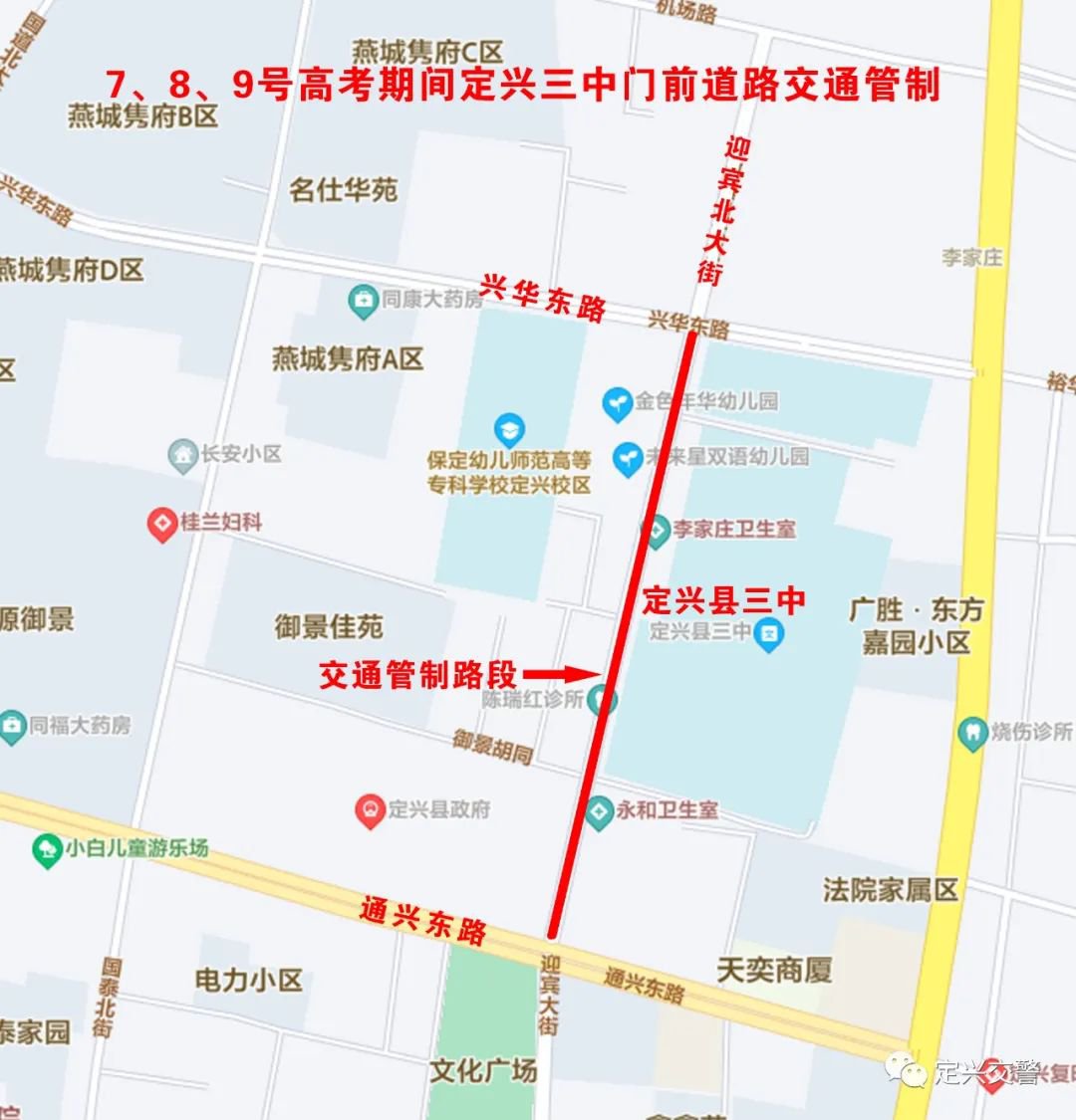 2022年高考将于6月7日-9日举行,今年我县高考设定兴一中和定兴三中两个考点。为进一步加强高考期间道路通行能力,全力保障考生的交通安全,定兴县公安局交通管理大队研究决定,对以下路段实行交通管制,现将有关事宜通告如下: