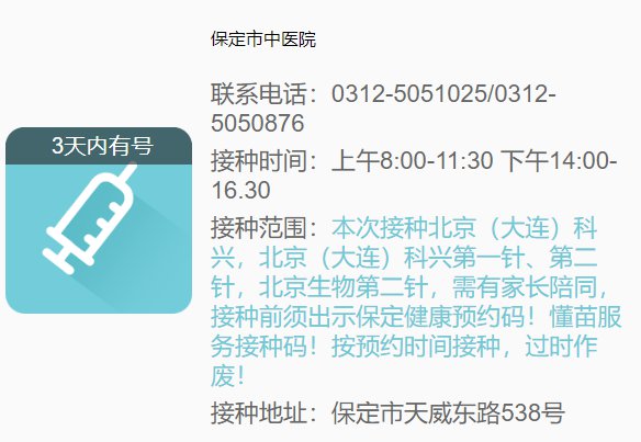 接种范围:本次接种北京(大连)科兴,北京(大连)科兴第一针、第二针,北京生物第二针,需有家长陪同,接种前须出示保定健康预约码!懂苗服务接种码!按预约时间接种,过时作废!