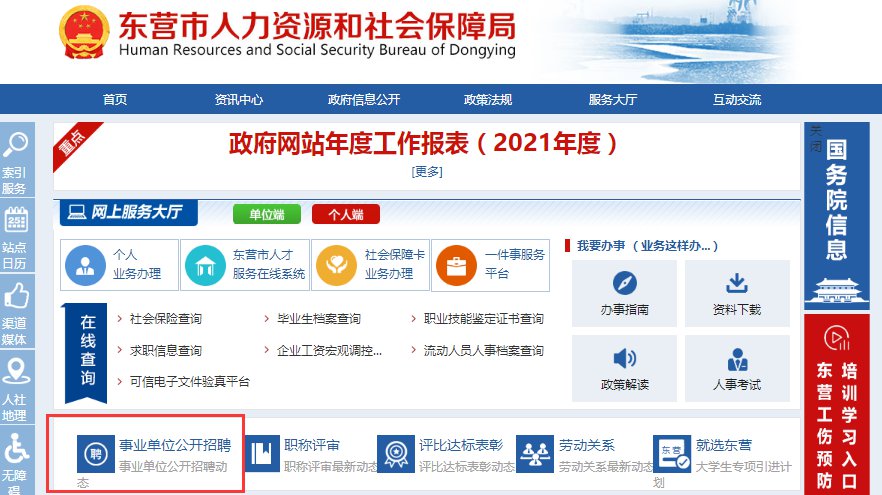 1、登录东营市人力资源和社会保障局网站(http://dylss.dongying.gov.cn/col/col37330/index.html)