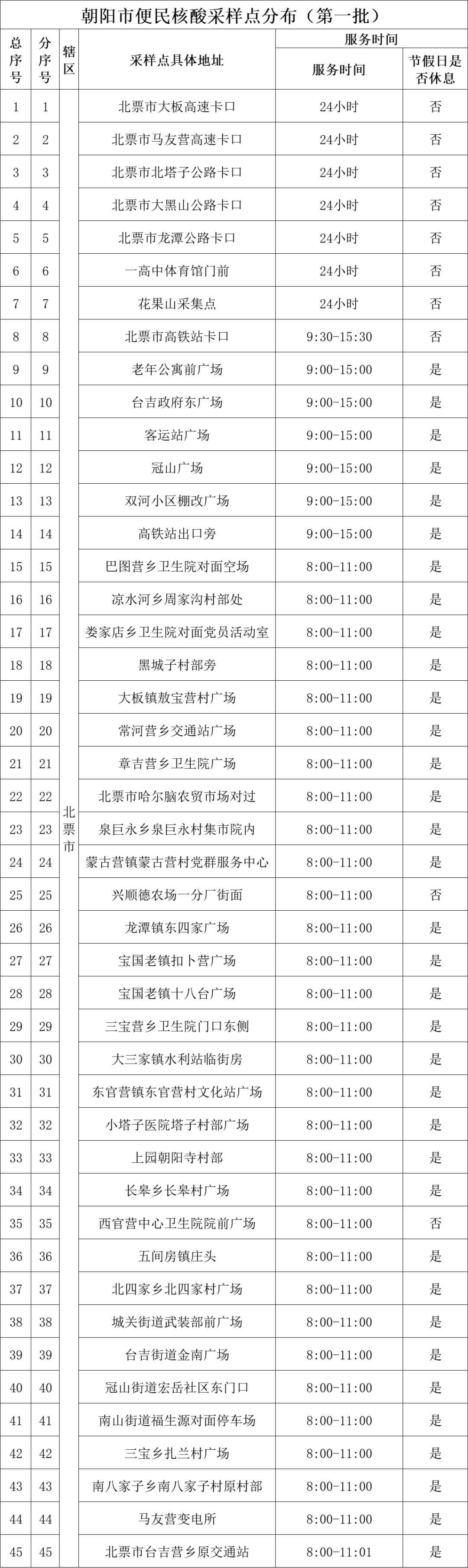 朝阳市全域常态化核酸检测(更新至5月31日)