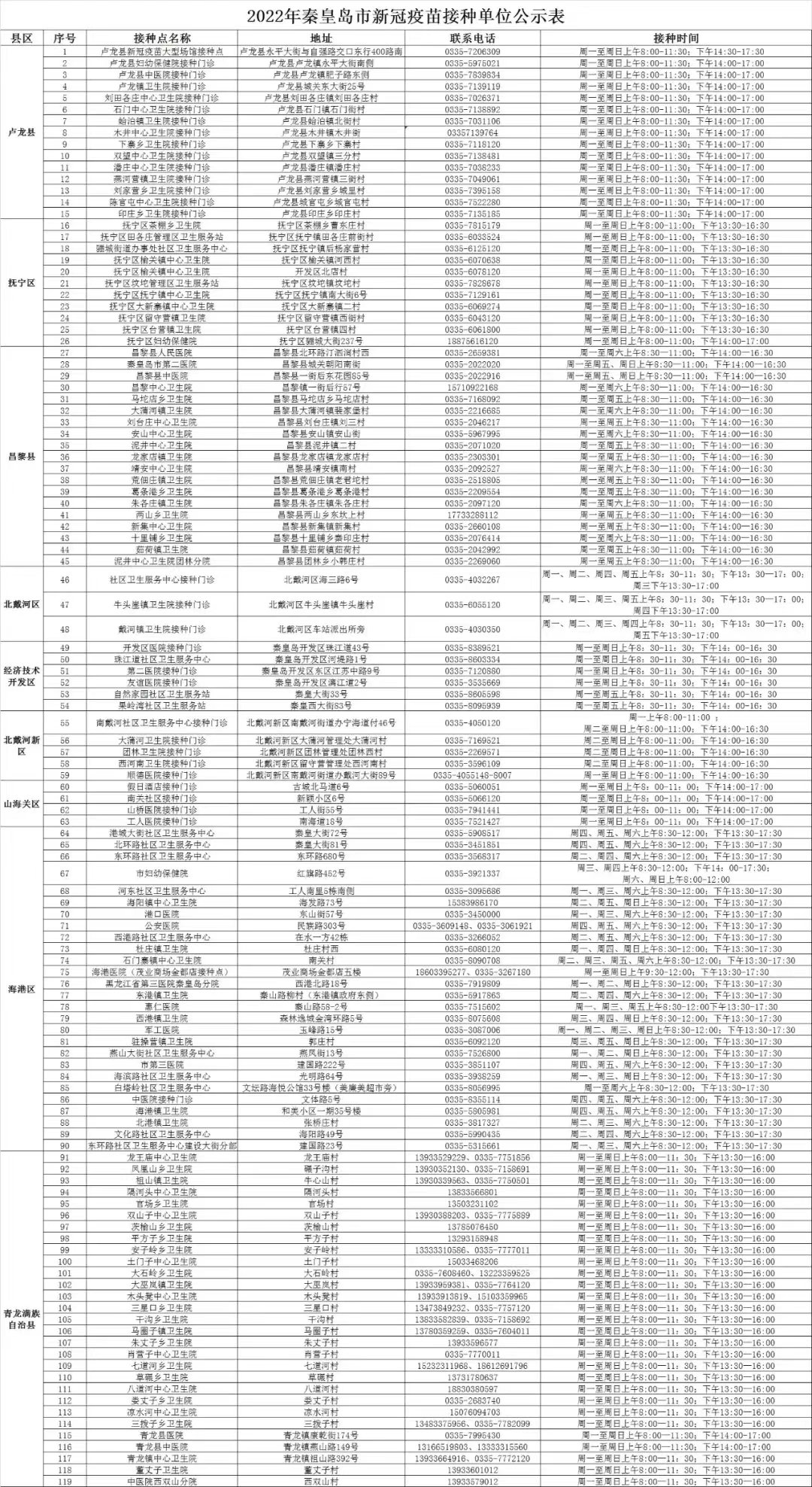 秦皇岛市新冠疫苗接种点信息(2022年3月19日版):
