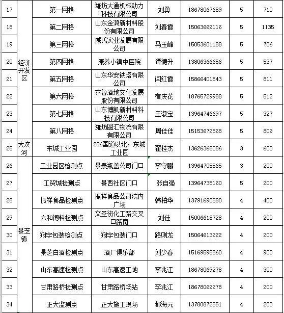 为方便企业职工应检尽检采样,市委疫情防控指挥部根据企业分布区域、覆盖职工数量,决定在兴安街道、新安街道、大汶河旅游中心、景芝镇、经济开发区设置41个企业职工应检尽检采样点。采样点由属地镇街区负责管理,卫健部门负责指导,具体开放时间由属地镇街区结合区域核酸检测时间确定。其他镇街区要结合属地企业分布及其职工数量,合理设置采样点,为企业职工采样。