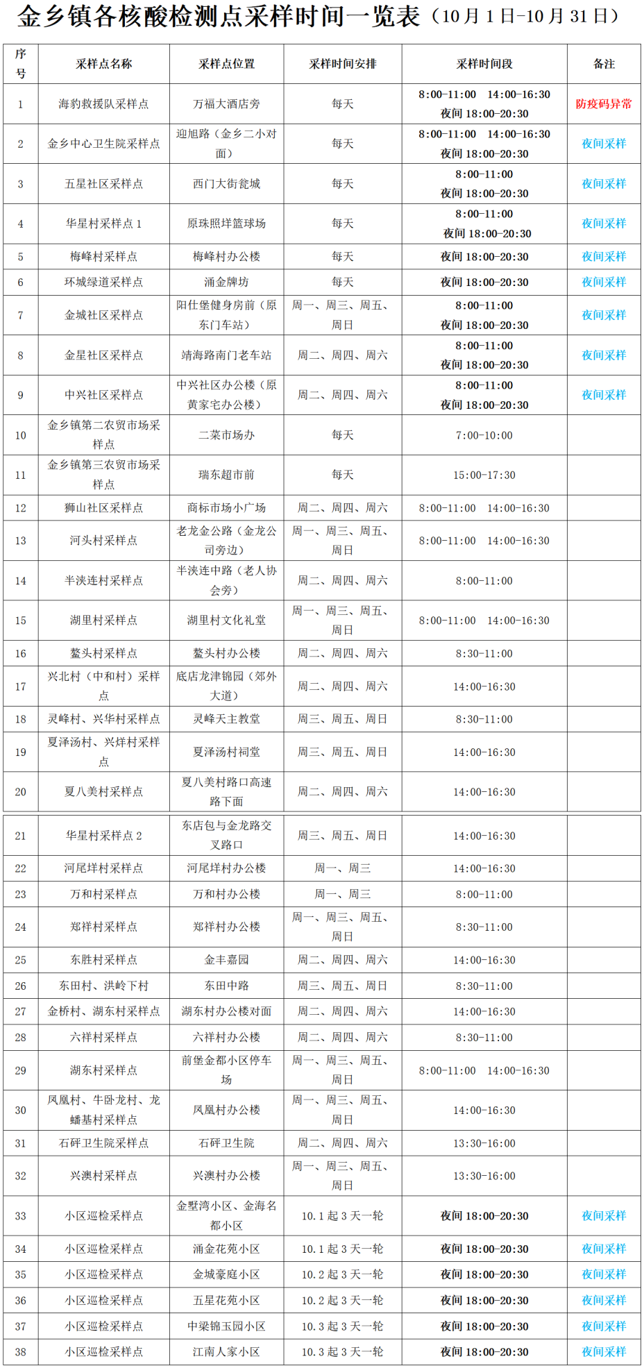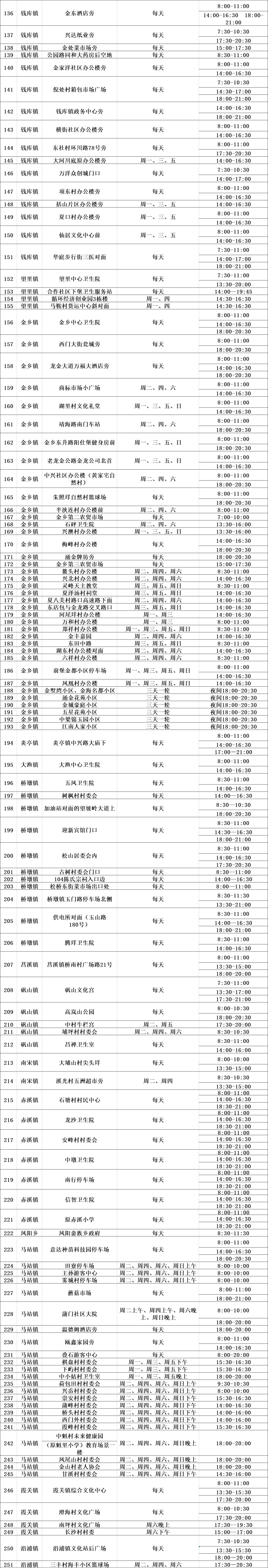 温州苍南县金乡镇各核酸检测点及采样时间安排