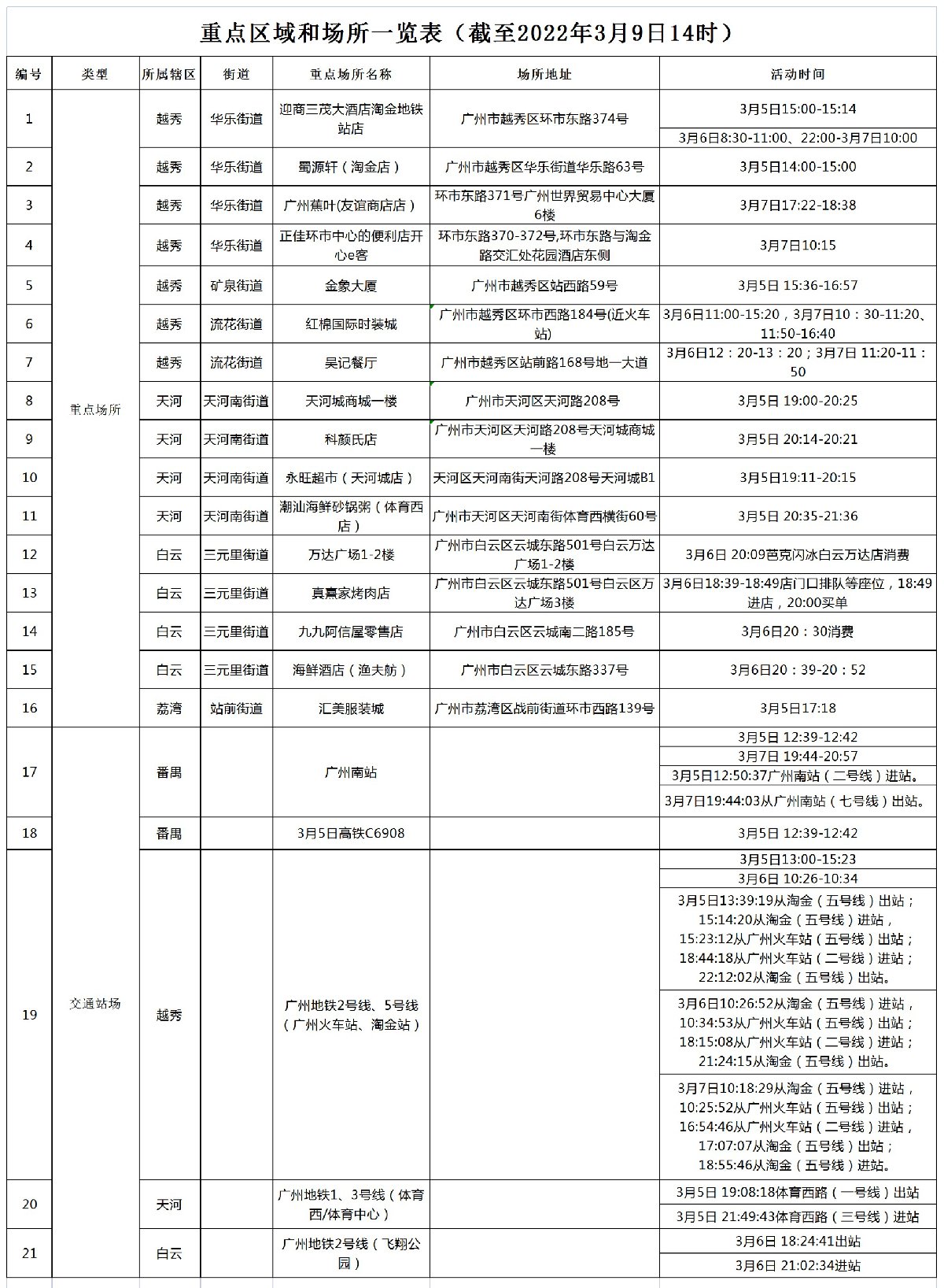 ➤花都区涉及重点场所包括: