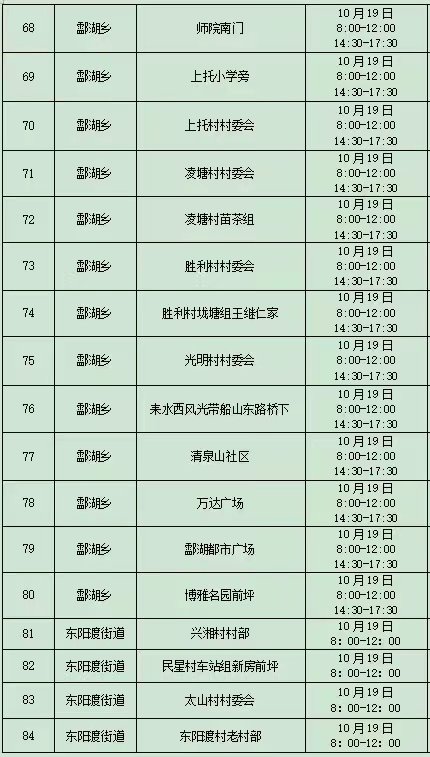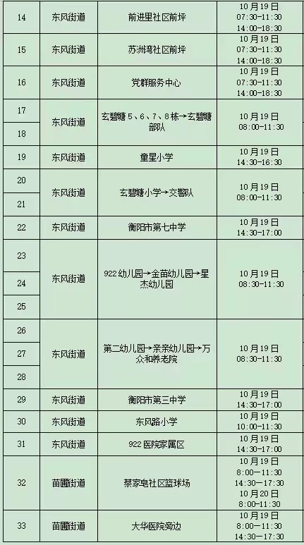 采样时间为:10月17日—10月20日。采样点具体开放时间、地点见《珠晖区区域核酸检测采样点公示表》。