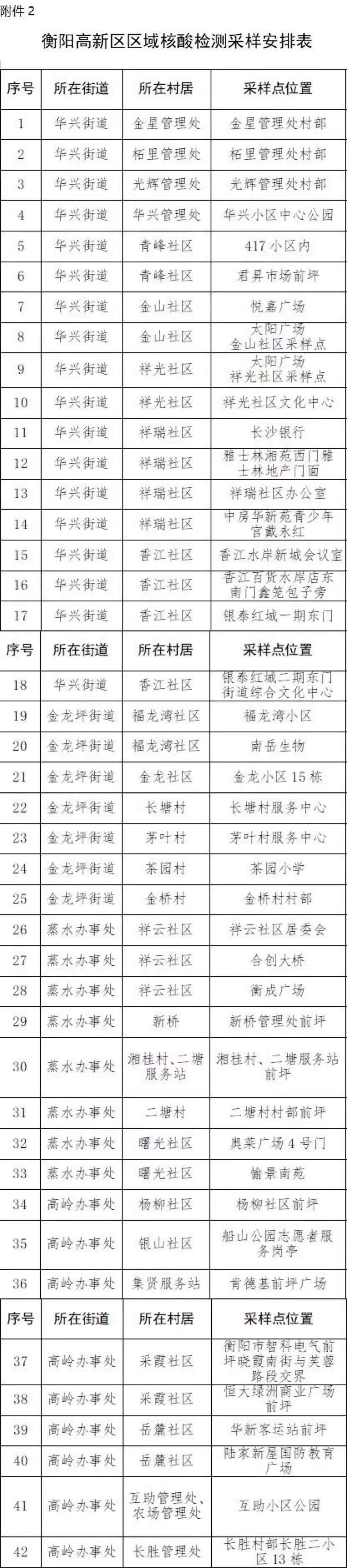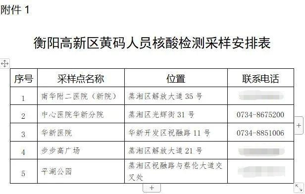 附件:1.衡阳高新区黄码人员核酸检测采样安排表