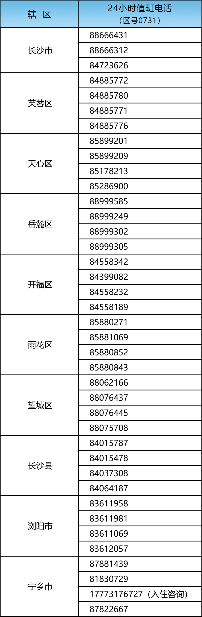 长沙市县两级新冠肺炎防控指挥部值班电话:
