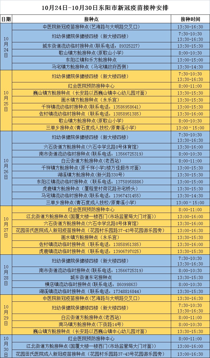 安徽智飞龙科马有限公司的重组蛋白疫苗(CHO细胞):红会医院预防接种中心、江北街道方舱接种点、城东街道东宅接种点、南市街道方舱接种点、白云街道方舱接种点、巍山镇方舱接种点、横店镇方舱接种点、南马镇方舱接种点、千祥镇方舱接种点、湖溪镇方舱接种点、虎鹿镇方舱接种点、花园田氏医院新冠疫苗接种点。