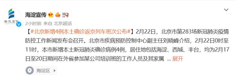➤内容来源:2月22日北京市第283场新冠肺炎疫情防控工作新闻发布会