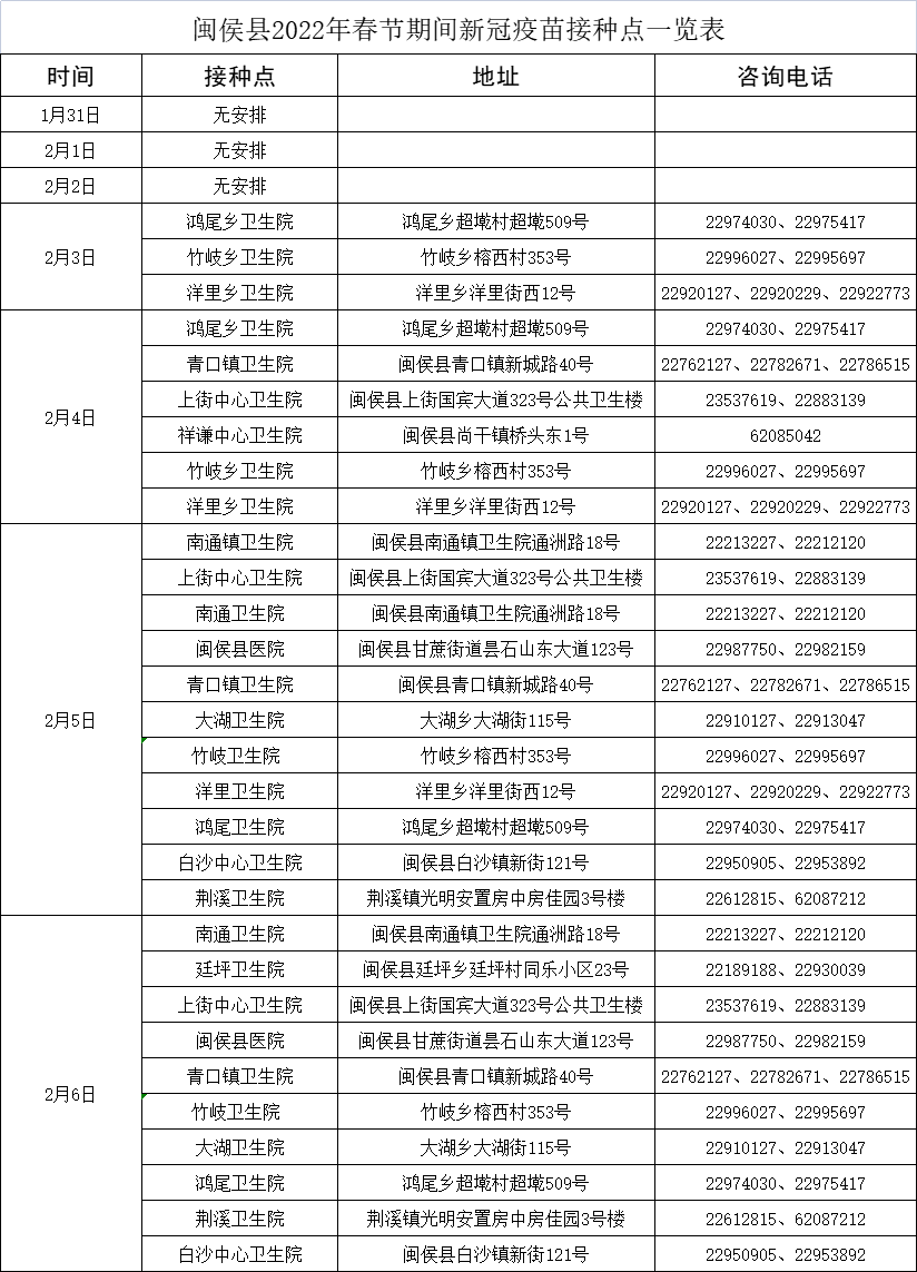 闽侯县春节新冠疫苗接种安排