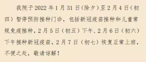 1月29日—2月6日暂停新冠疫苗接种服务,
