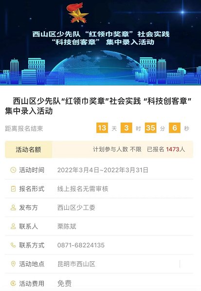 (三)西山区少先队“红领巾奖章”社会实践 “科技创客章” 集中录入活动;