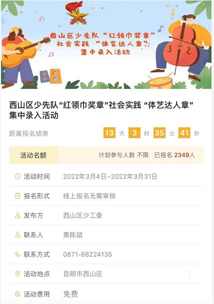 (二)西山区少先队“红领巾奖章”社会实践 “体艺达人章” 集中录入活动;