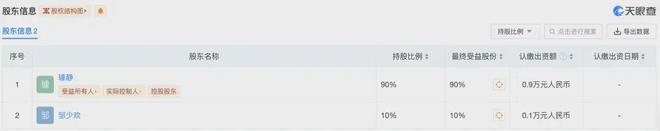 公司经营范围包括日用品销售、家电销售、通讯设备销售、服装服饰零售、文化娱乐经纪人服务等。相关人士告诉第一财经记者,该公司法人即为刚刚离职的百度副总裁璩静,持股比例90%。另一名持股10%的股东邹少欢是璩静在百度任职期间的助理。