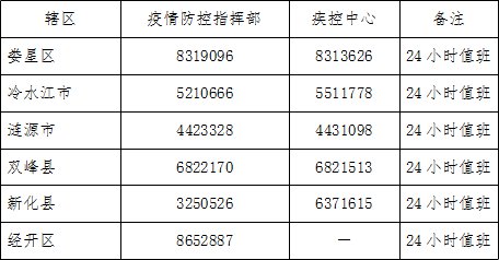 娄底市各县市区新型冠状病毒感染肺炎防控联系电话