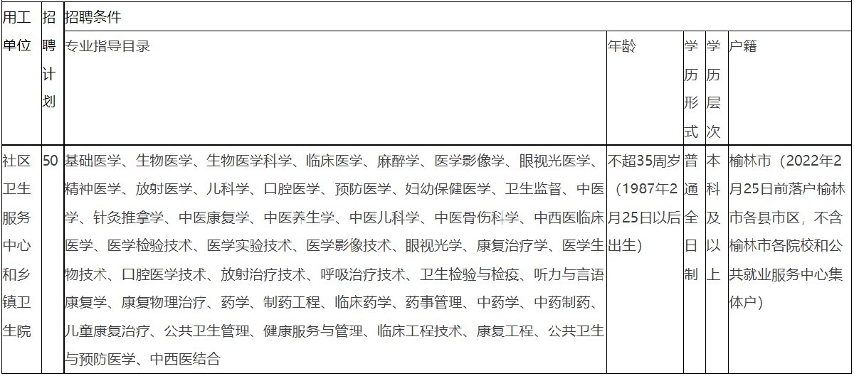 2022年榆阳区公开招聘基层医疗卫生机构医技人员计划条件一览表