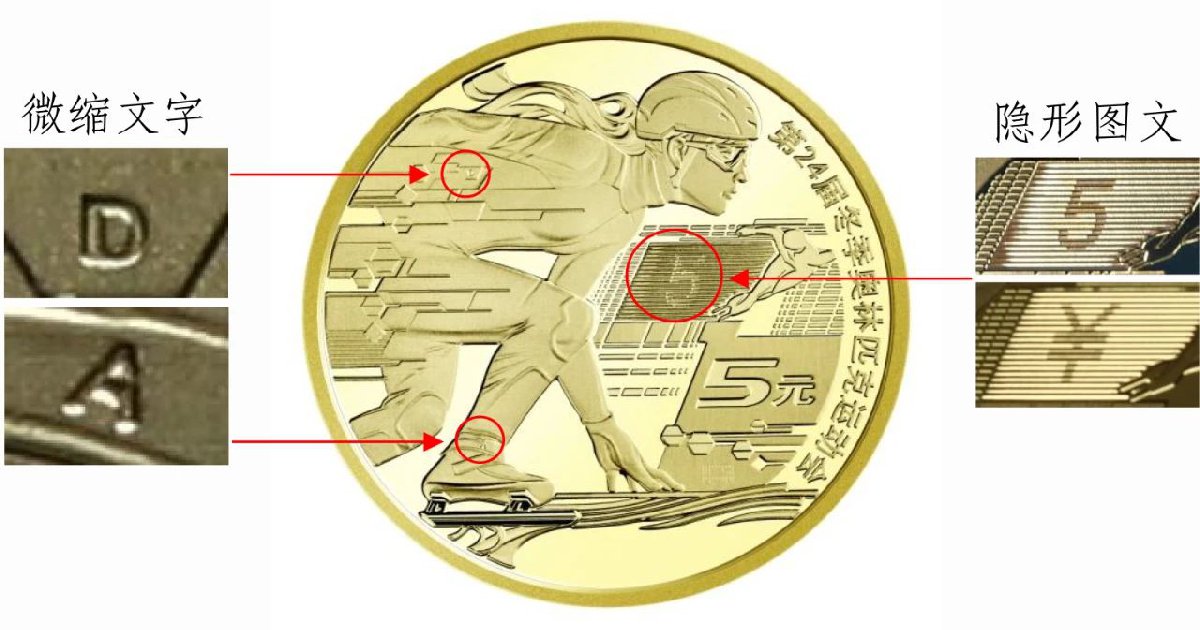 第24届冬季奥林匹克运动会铜合金纪念币——冰上运动项目公众防伪特征: