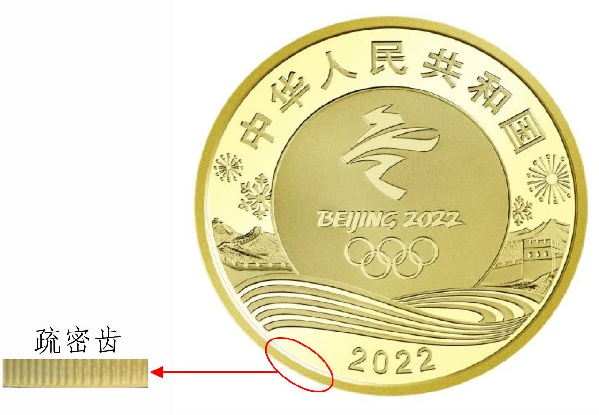 1.疏密齿。硬币外缘分布有疏密排列的丝齿。