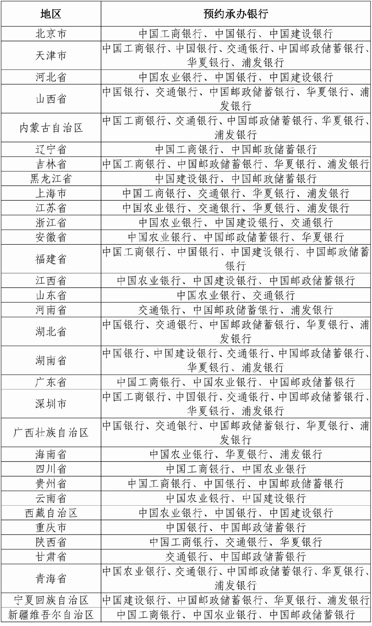 重庆地区预约工作承办银行:中国银行、中国邮政银行