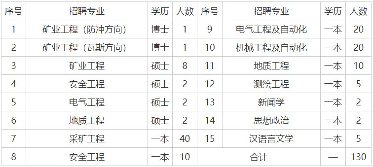 2.2017-2022年统招全日制高校毕业生,一类本科及以上学历,取得毕业证和学位证书,年龄不超过30周岁;往届毕业生毕业后从事本专业煤矿相关工作的优先;