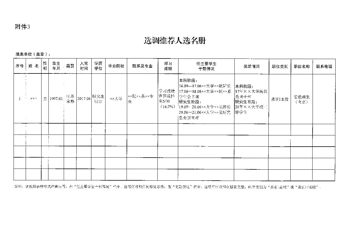2、个人申请。符合条件的毕业生均可填写《选调推荐人选名册》,向院系党组织提出申请。