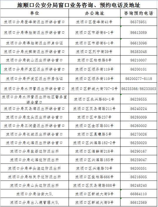 旅顺口分局办理户籍、身份证、居住证、出入境、综合窗口业务开启预约模式