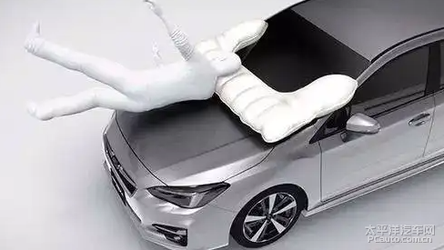 行人安全气囊采用两种可在碰撞中对行人进行保护的安全气囊,一个是发动机盖气囊,另一个是安全气囊,两者配合使用可以有效低避免汽车撞击人体时带来的伤害。