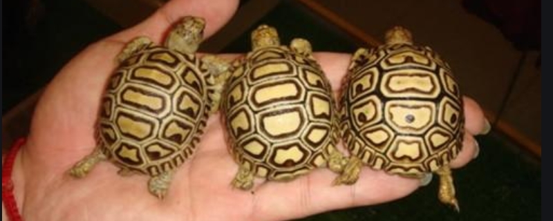 豹龟多分布于非洲南部,油麦菜、仙人掌、红薯叶都可作为龟粮,太小的豹龟不宜喂食仙人掌,避免消化不良。豹龟寿命很长,人工养殖生长速度快,从12-15年之间性成熟,繁殖时间早,人工饲养繁殖速度快;雄性与雌性豹龟交配后会产蛋,一般为5-18只。可放入恒温保温箱里孵化。