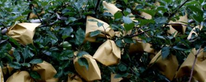一般在生理落果后套袋。如果葡萄在5月份左右套袋,梨在花后20天左右放袋子,脐橙和葡萄柚在7月中旬放袋子。套袋应在晴天或阴天进行。选定果实后,首先打开果袋,抬起袋底,袋体膨胀放入果实,幼果悬挂在中央,用折叠方法将袋口折叠在果轴上,不要扎在果柄上,袋底要打开通风。