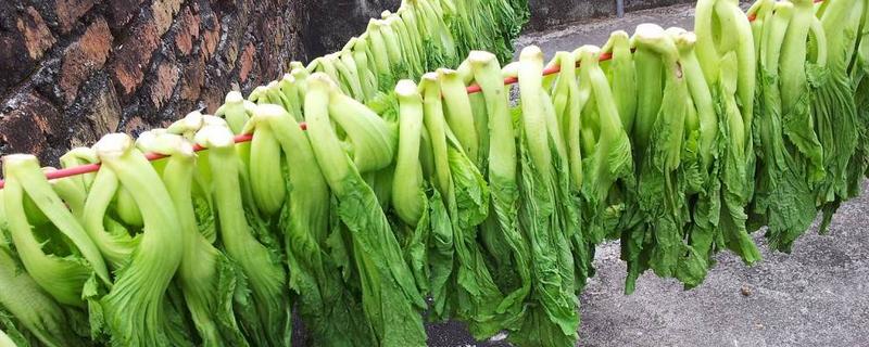 (1)步骤一:去菜田中采摘一些成熟的雪里红,洗净后挂在绳子上暴晒1天,待叶子稍微发蔫时即可取出准备腌制。挑选雪里红时,尽量不要选太嫩的,也不要选太老的,以免太嫩腌制不出来,太老腌出来吃起来口感又不好。在暴晒时,不要晒得太干,以免腌的不脆不好吃。