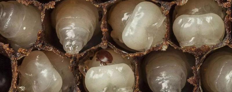 2、雄螨在封盖幼虫房中与雌螨完成交尾,会在幼蜂羽化之后死亡,雌螨在幼蜂羽化出房时寄生于蜂体或转移到新的幼虫房中繁殖下一代。
