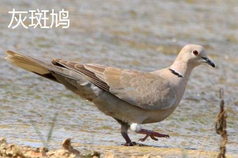 (2)外形特征:它的体上约32cm,体色是灰褐色,羽毛上的斑块呈蓝灰色,尾羽的尖端呈白色,脖子上有黑色颈环。