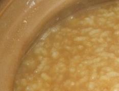 3、等锅中的大米变得软糯以后再把制好的苹果泥放入到粥中,再接着用小火慢慢的煮制十分钟左右,清香诱人营养丰富的婴儿苹果粥就做好了。