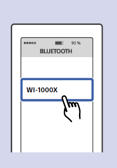 点击[WI-1000X]进行连接,耳机和智能手机就可以彼此配对和连接,会听见语音指导“蓝牙连接”。