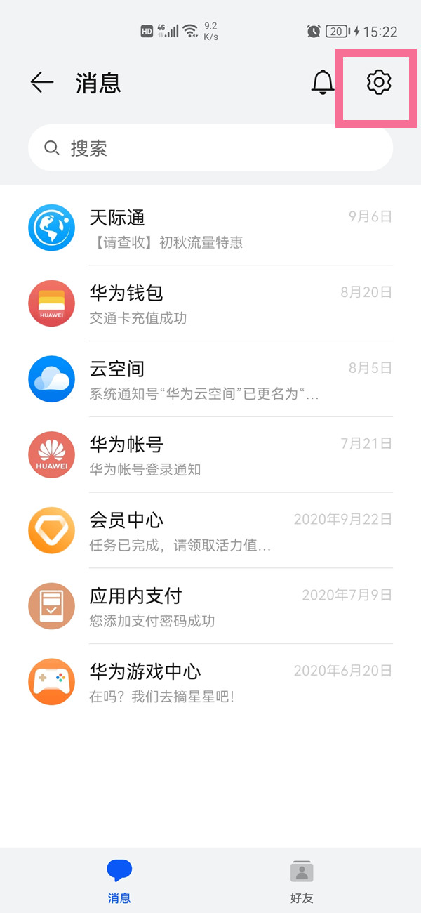 1、在手机设置菜单中点击华为帐号,点击右上角图标进入消息页面。