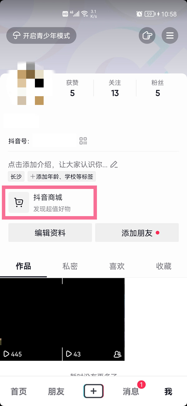 1、打开抖音app,在“我”页面点击【抖音商城】。