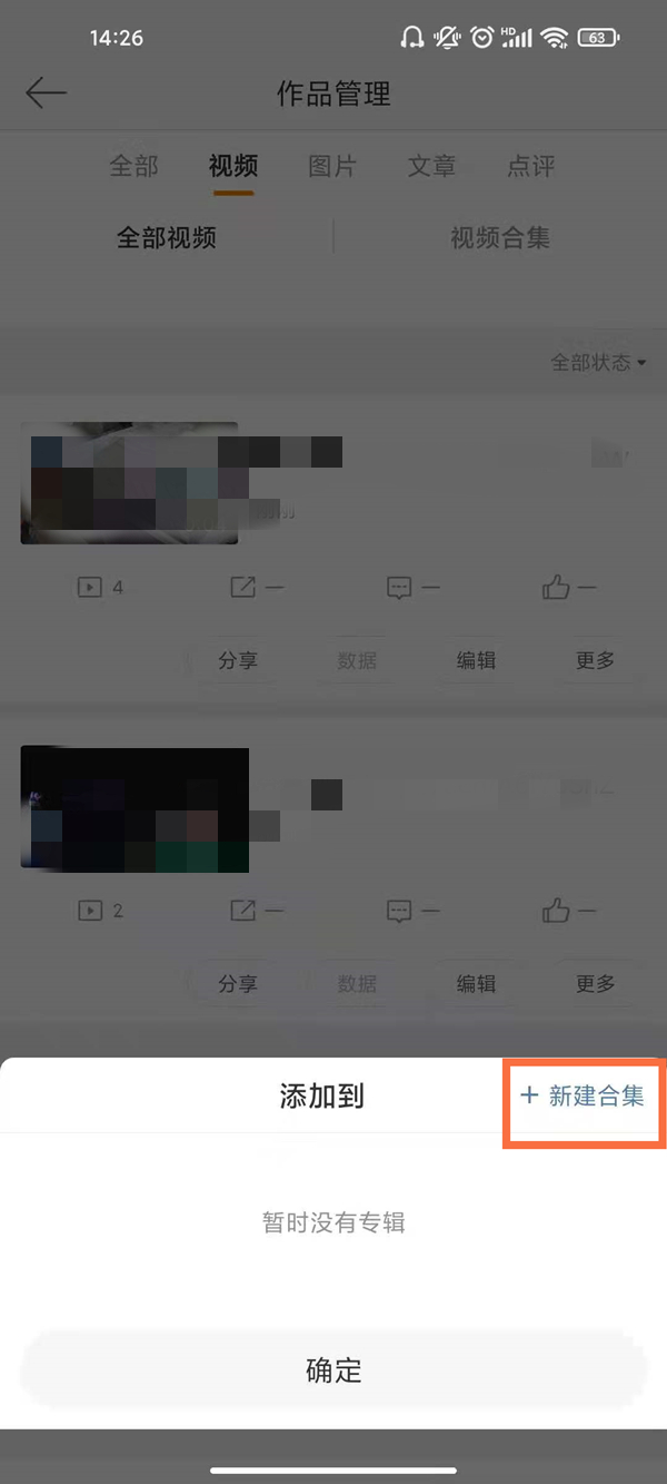 4、点击新建合集,再输入合集的名称,再点击确定即可。