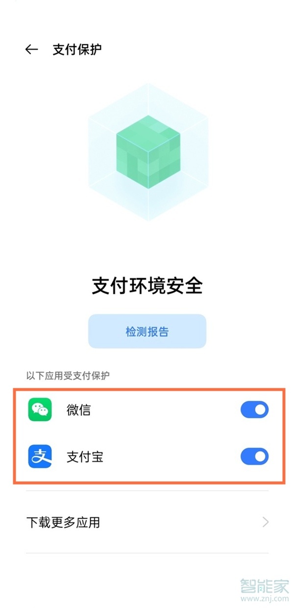 2、选择需要保护的支付应用,将右侧的开关开启即可。
