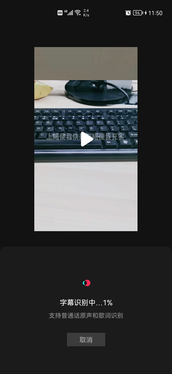 2、系统会对普通话原声和歌词进行识别自动生成字幕。
