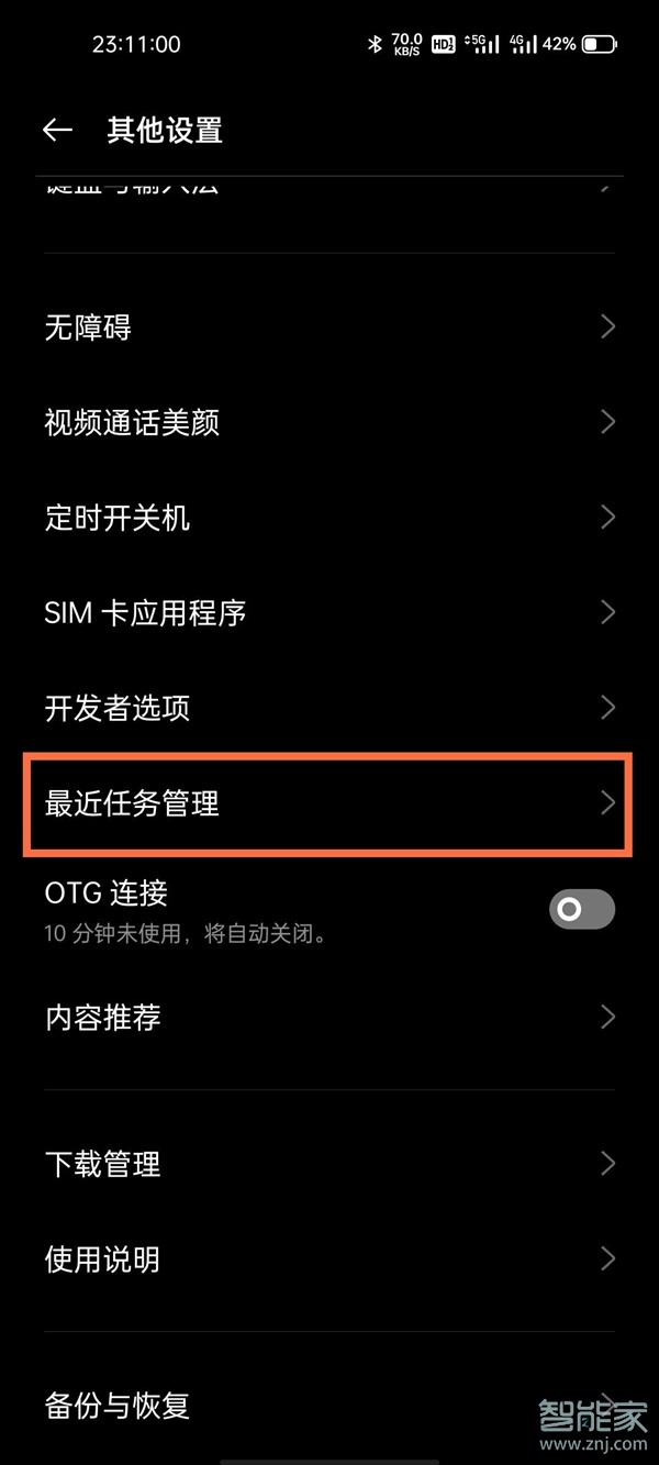 2、点击【最近任务管理】。