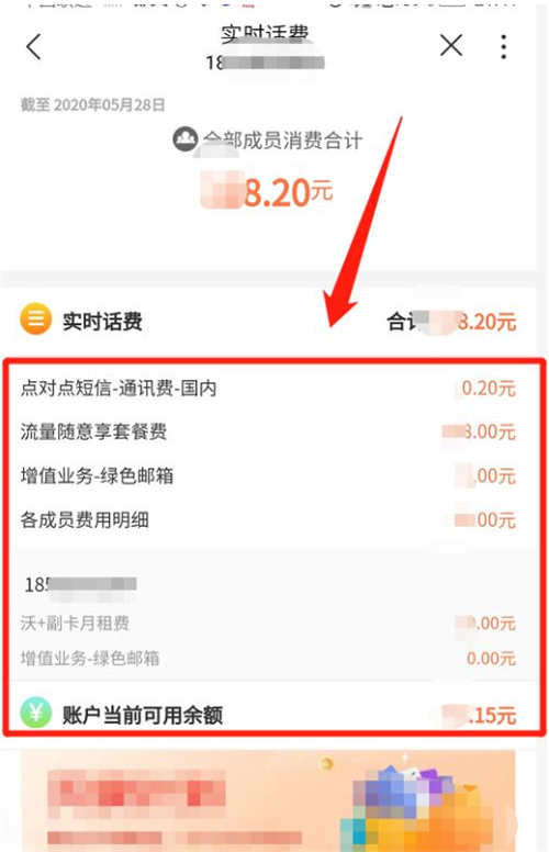 4、在弹出的窗口中查看中国联通实时话费费用明细的详细信息即可。