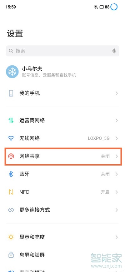 2、或者打开手机设置,点击网络共享。