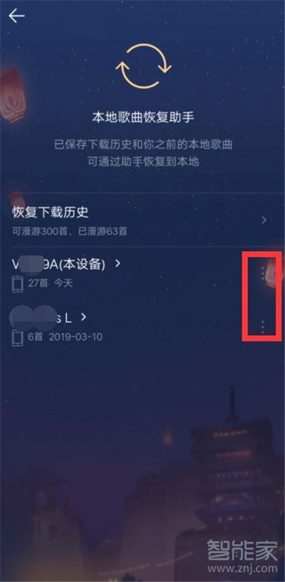 2、进入本地界面后,点击右上角的三点图标,点击【本地歌曲恢复助手】。