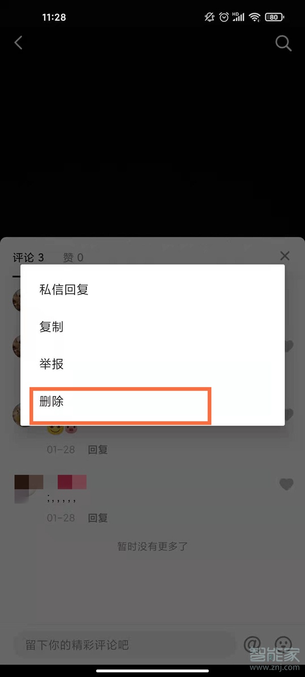 2、长按评论。