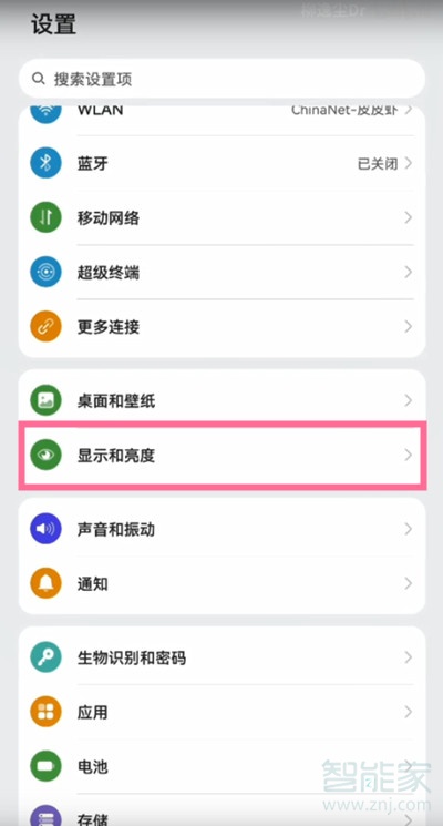 1、在手机设置菜单中点击【显示和亮度】选项。